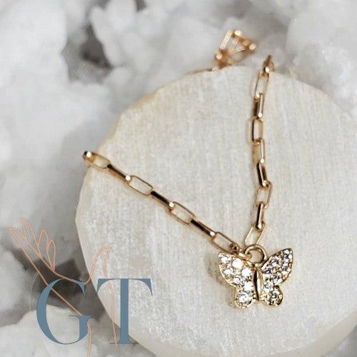 Handcrafted Details: 14k gold butterfly encrusted with genuine diamonds.